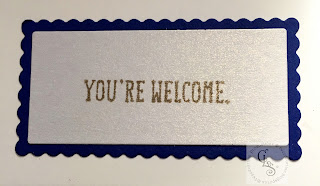 I stamped the sentiment in Ranger's Adirondack Earthtones Mushroom dye ink, which is almost a perfect match to the embossing powder because it is sort of a taupe colour, too. Mounted on navy cardstock. Inside I stamped this: